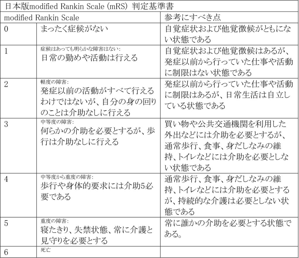 - modified Rankin Scale(mRS)、食事・栄養、呼吸のそれぞれの評価スケールを用いて、いずれかが3以上の場合。