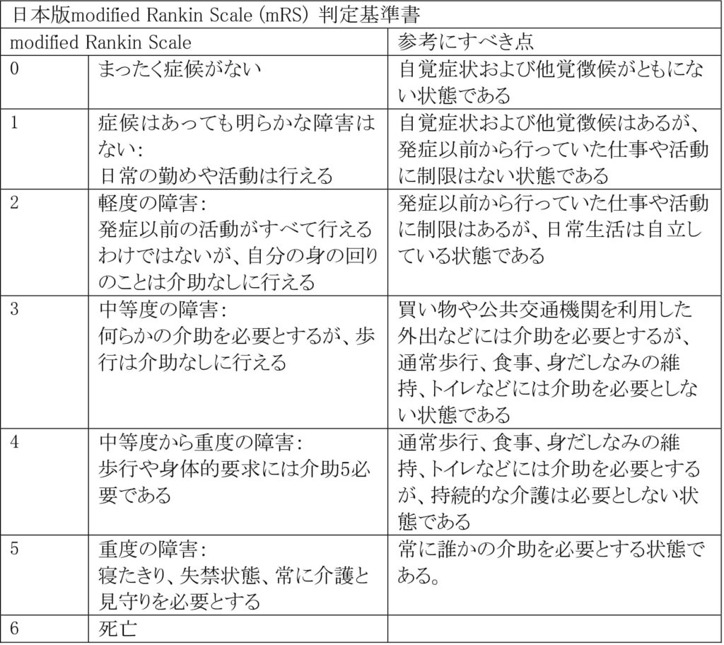 2)modified Rankin Scale(mRS)、食事・栄養、呼吸のそれぞれの評価スケールを用いて、いずれかが3以上の場合。