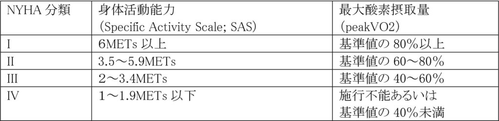NYHA分類については、以下の指標を参考に判断することとする。